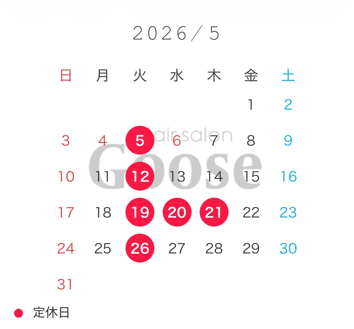 • Hair salon Goose 2026年5月